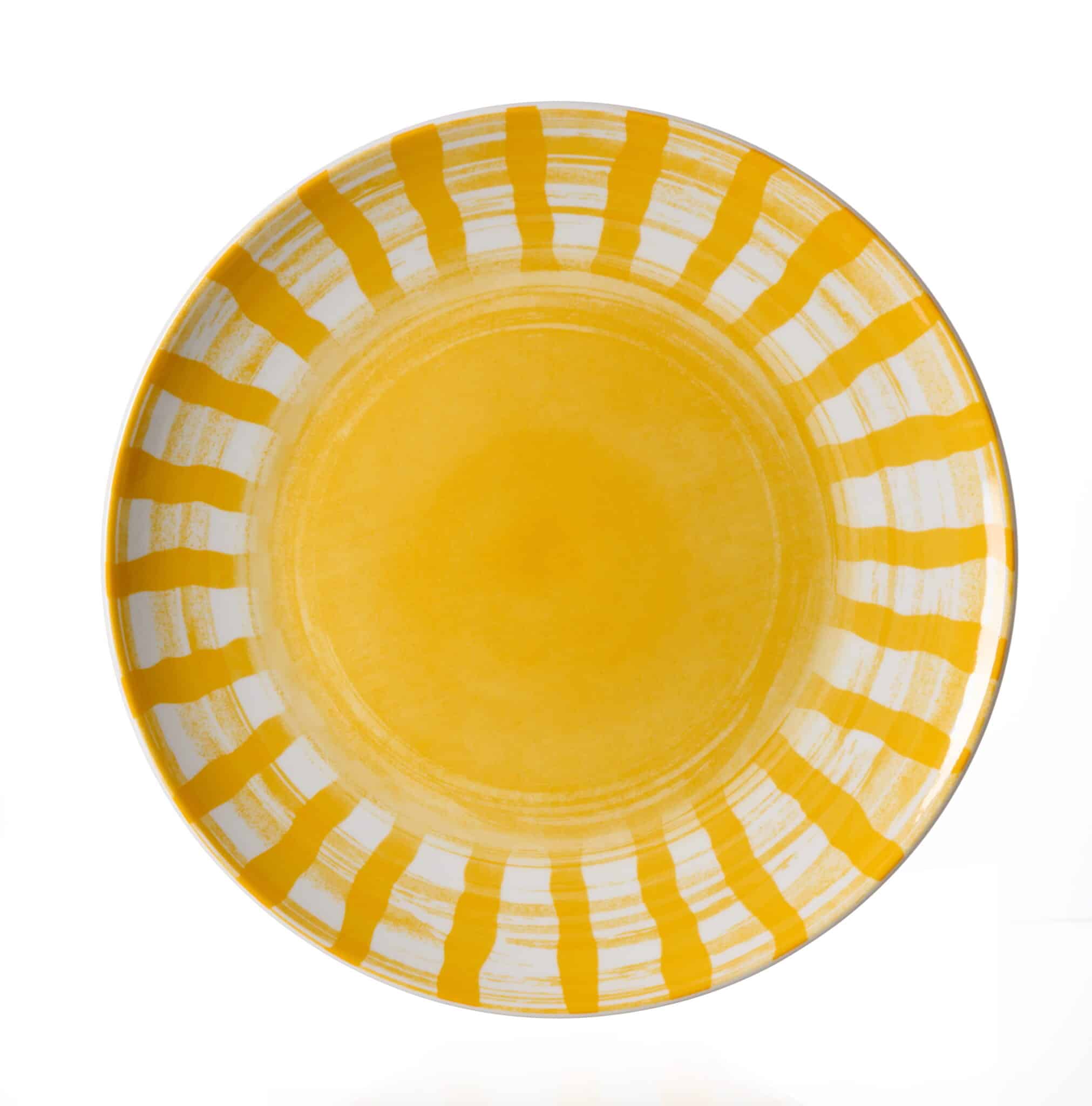 Ein Tisch, der nach Sommer aussieht: Mit dem Speiseteller Set „Sole Mio“ in Gelb bringst du mediterrane Leichtigkeit direkt auf deinen Esstisch. Die vier großen Teller aus Porzellan sind perfekt für Pasta, Salate oder dein Lieblingsgericht – und machen jedes Essen ein bisschen schöner. Der charakteristische Handmade-Look verleiht jedem Teller eine individuelle Ausstrahlung, während das warme Gelb sofort Urlaubsstimmung erzeugt. Genau richtig für lange Abende draußen oder ein entspanntes Dinner mit Freunden. Das ist kein Standard-Geschirr – das ist ein Statement für alle, die das Meer im Herzen tragen.
