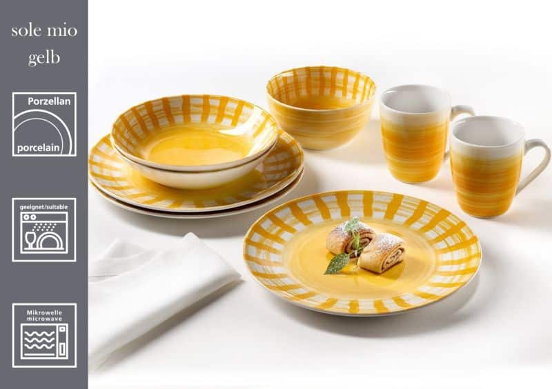 Ob leichte Sommersuppe, Pasta oder Bowl – mit dem Suppenteller Set „Sole Mio“ in Gelb wird jedes Gericht zum Hingucker. Die vier tiefen Teller verbinden Funktionalität mit einem Design, das sofort an Sonne, Süden und entspannte Urlaubstage erinnert.
