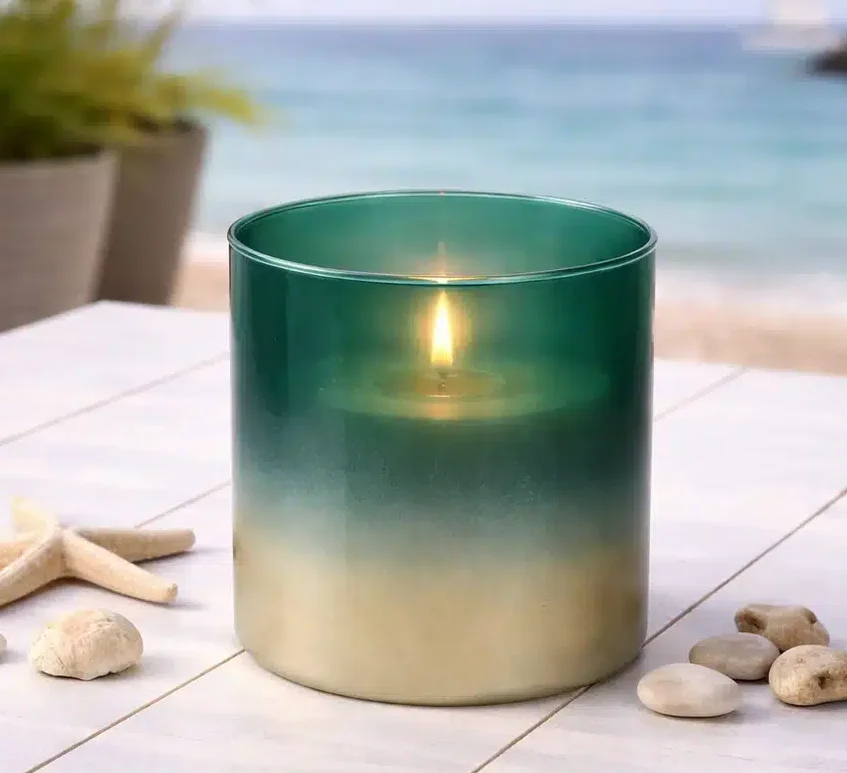Stell dir vor, du blickst am frühen Abend aufs Meer, das Wasser schimmert ruhig in sattem Grün, schon kühl vom Abendlicht. Das Windlicht in Grün mit zartem Goldverlauf erinnert genau an diesen Moment – klar, edel und angenehm zurückhaltend. Das matte Glas sorgt für ein sanftes, stimmungsvolles Licht, ohne zu warm zu wirken. Ob auf dem Tisch, im Regal oder auf dem Balkon – es setzt einen stilvollen Akzent mit maritimer Note.